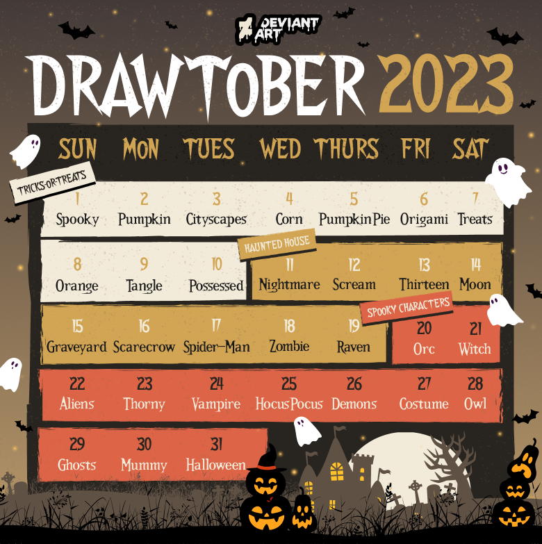 The image below is from DeviantArt and has 31 drawing prompts - one for each day of October.