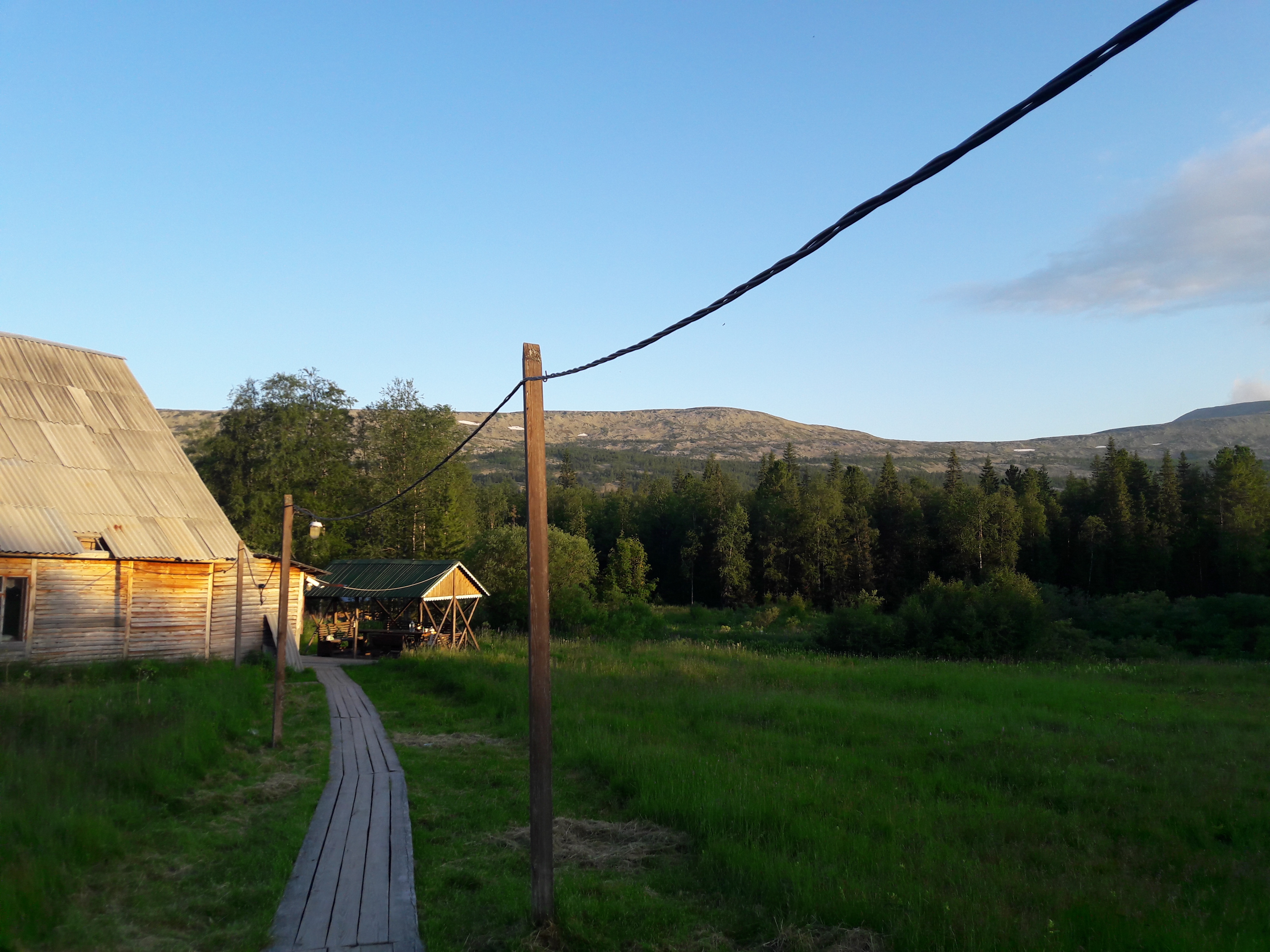The oldest mountain system on the planet. The recording was made in the evening in a large clearing, on the territory of a tourist base located at the foot of a mountain range. It was quite windy. You can hear the wind blowing in the trees at the edge of the forest and stirring the grass in the clearing. Nearby, to the side, you can hear the murmur of a small stream.